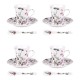 Box of 4 cups, 4 saucers, 4 porcelain spoons, finely decorated. Table et Passion country collection.