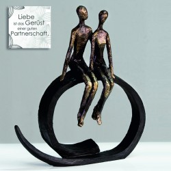 Sculpture de réalisée et peinte à la main par casablanca. Alliage de résine et poudre de marbre. Sculpture couple dans anneaux figurine en polystone · couleur bronze base en métal · noir patiné profondeur: 8.5 cm largeur: 36 cm hauteur: 40cm