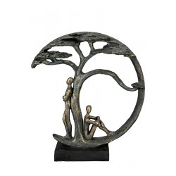 Sculpture de réalisée et peinte à la main par casablanca. Alliage de résine et poudre de marbre. Sculpture "Close" poly · finition bronze figurines assises sur un cerceau noir largeur: 30 cm hauteur: 35 cm