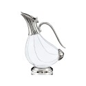 Carafe à décanter le vin forme canard. Cette carafe à décanter le vin est en verre soufflé bouche et métal argenté.