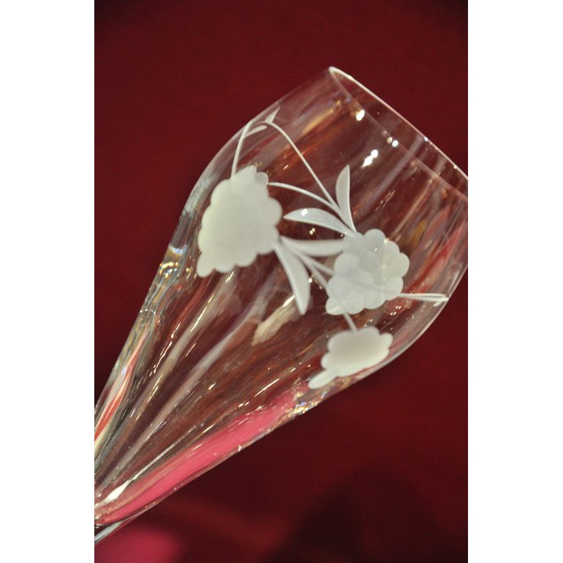 6 flûtes à champagne Super 20cl en cristallin gravé à la main. Décor raisins réalisé de façon artisanal.